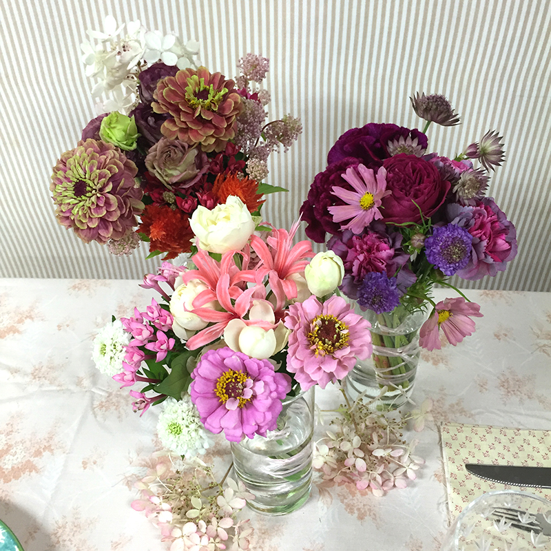 “用意された花材に自分で選んだ花材を足して作るアレンジメント”
