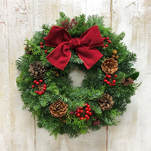 香りの良いフレッシュなモミを使い、正式なテクニックでクリスマスリースを作ります。